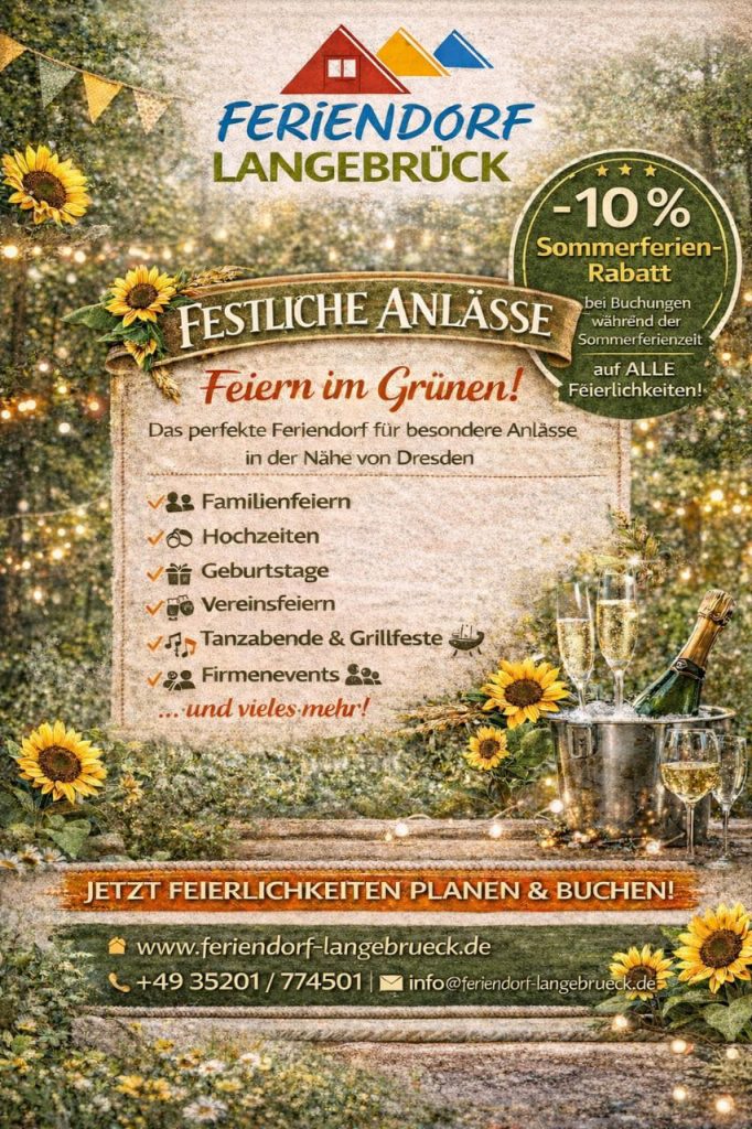 Kommen Sie vorbei, feiern Sie, genießen Sie und erleben Sie eine unvergessliche Zeit im Feriendorf Langebrück.